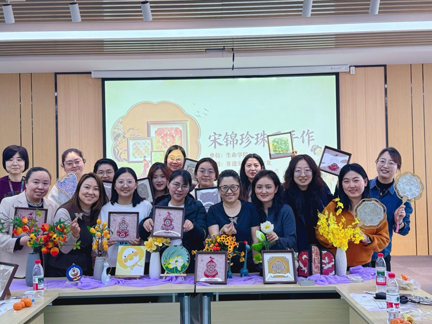 春风有信,花开有期。近期,生命学院在创新港泓生楼18-2081举办非遗宋锦珍珠画手作活动。老师们暂别忙碌的教学科研工作,在指尖流转间感受非遗之美,在珠光锦色中邂逅一场专属节日的浪漫。
